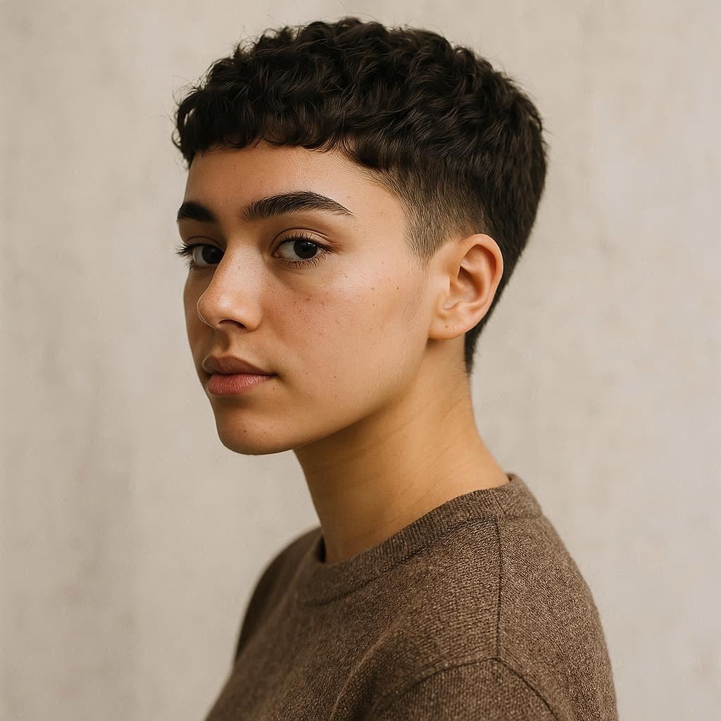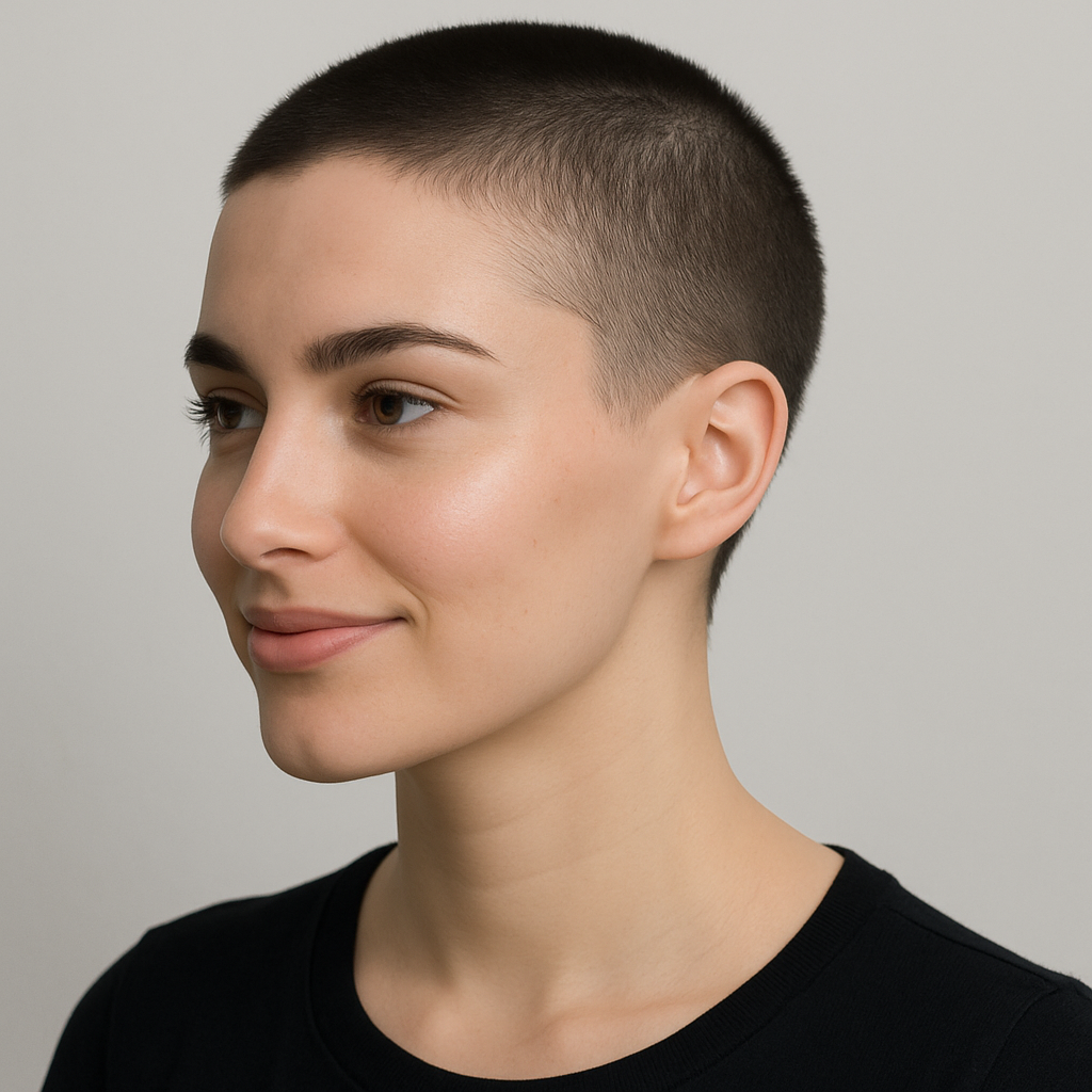 An ultra-short buzz on the sides and back with a soft, slightly longer top.